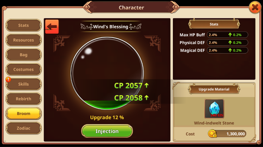 Дает специальные опции для метел с помощью «Волшебного пергамента» и золота. Вы можете увеличить свой ОЗ мощным заклинанием ведьмы! «Волшебный пергамент» может быть достигнут из специальных миссий скрученной / зараженной с постоянной скоростью.