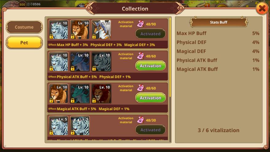 Соберите различные группы домашних животных и активируйте коллекцию домашних животных! Если активировано несколько коллекций домашних животных, все активированные усиления будут добавлены для применения на постоянной основе.