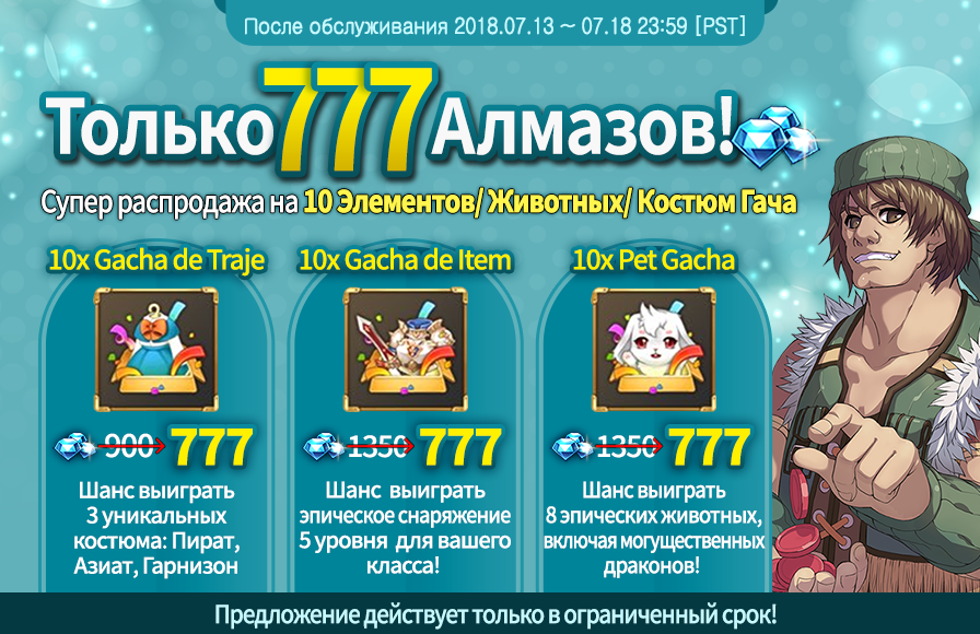 КОГДА: После обслуживания 2018.07.13 ~ 07.18 23:59 [PST]