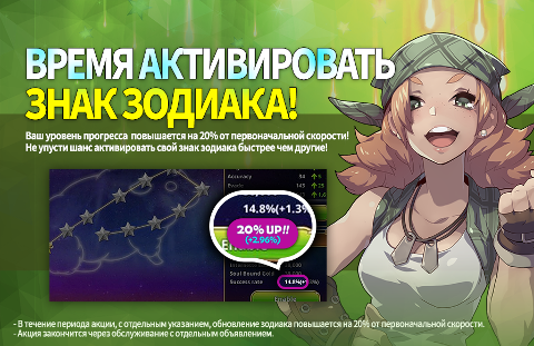 ОПИСАНИЕ: ваш шанс успеха увеличен на 20% от первоначального шанса! Не пропустите этот шанс, чтобы активировать знаки Зодиака быстрее других!