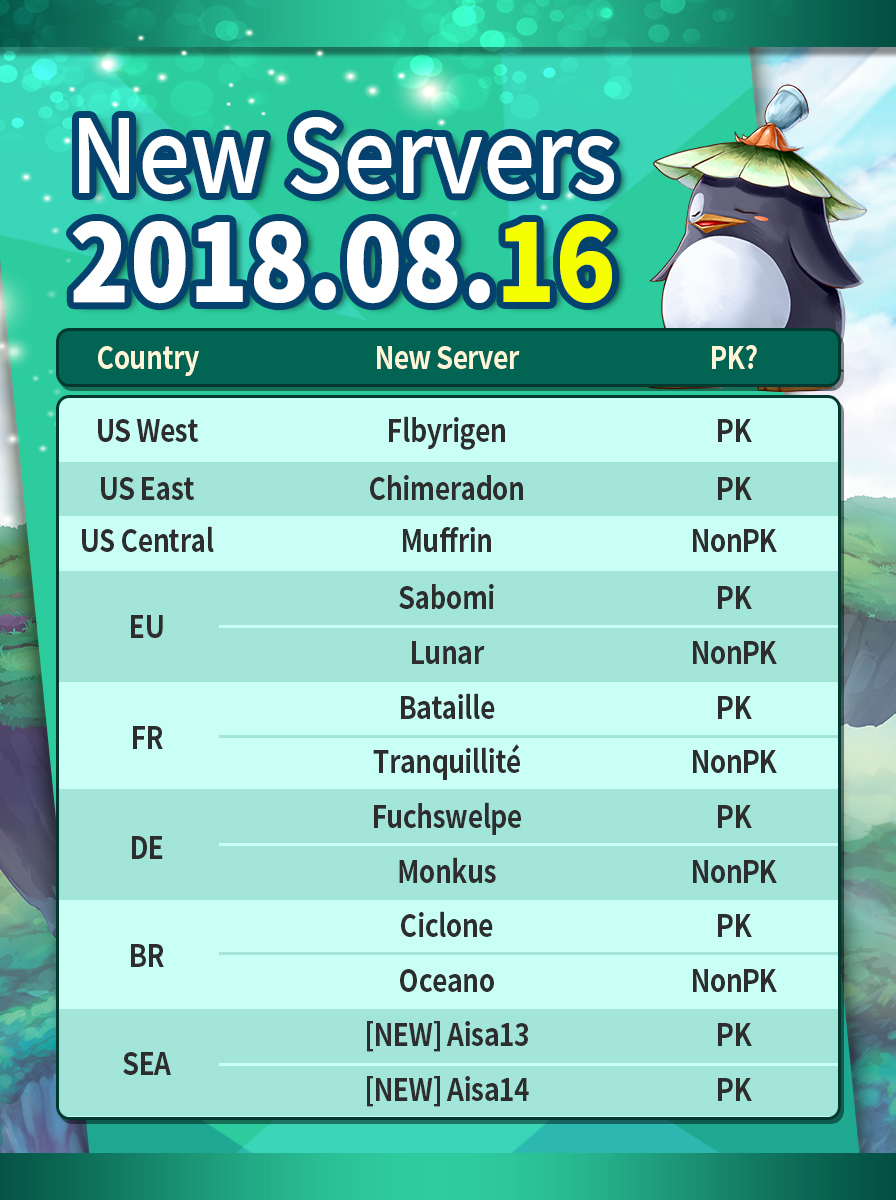 Сегодня у нас будет запланированное обслуживание серверов, когда мы откроем новые серверы SEA, BR, US Central, US East, US West, DE, EU и FR и включим события.