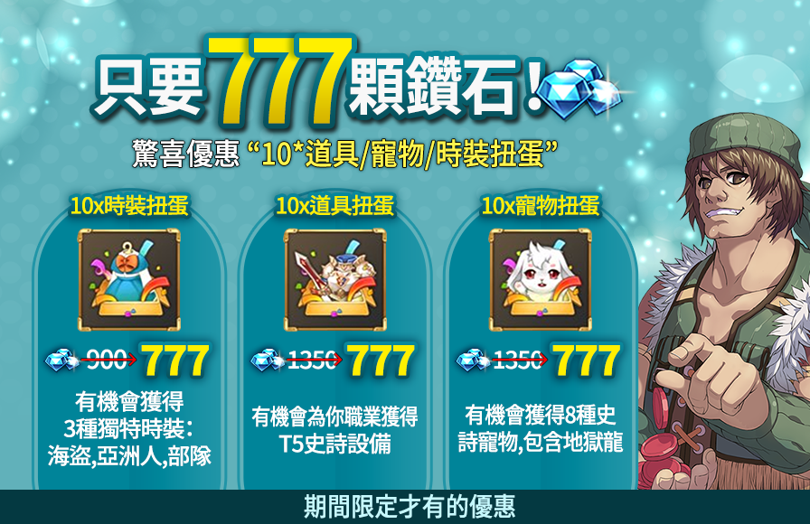 10x 寵物轉蛋 1350鑽石 -> 777鑽石