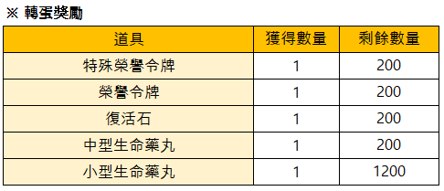 *如果限量轉蛋的獎勵已全被轉完時,活動將會提前結束。
