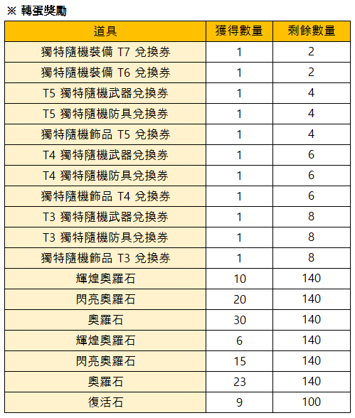 *如果限量轉蛋的獎勵已全被轉完時,活動將會提前結束。