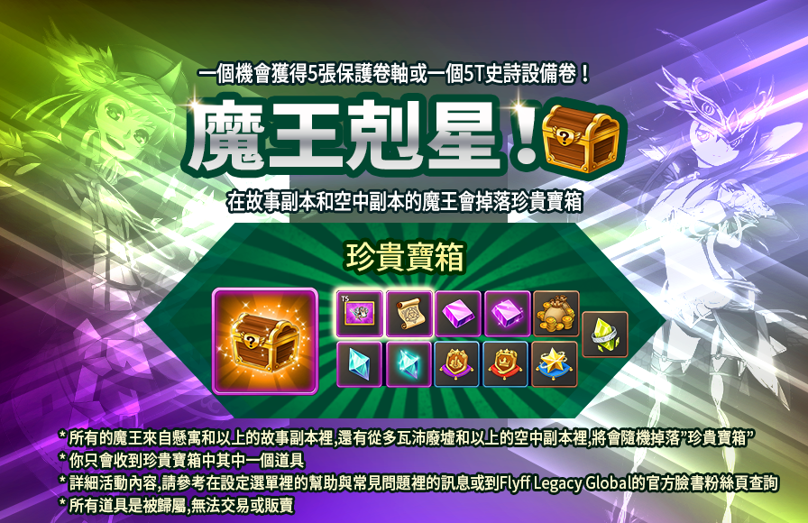 活動內容:故事副本和空中副本首領魔王有機會掉落“必需品寶箱”和“個人珍寶箱”,