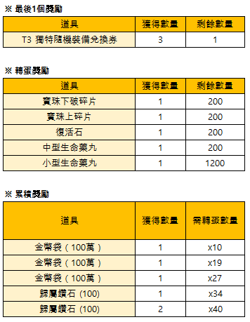 *如果限量轉蛋的獎勵已全被轉完時,活動將會提前結束。