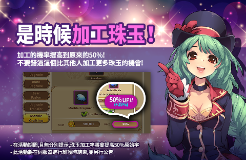 活動說明:想要加工寶珠嗎?現在正是時候!在活動時間內好好享受增加原來50%的機會!