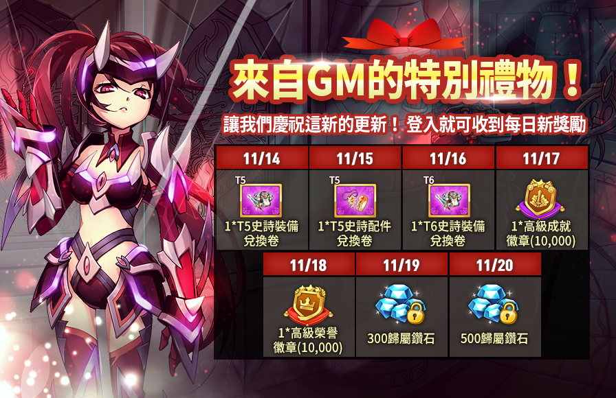活動時間:2018.11.14伺服器維護後~至11.21 23:59 PST