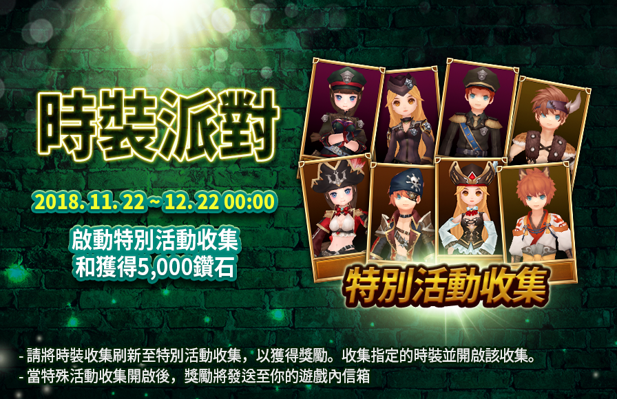 收集所有這些指定的時裝,並啟動特別活動收集,以獲得5,000鑽石!