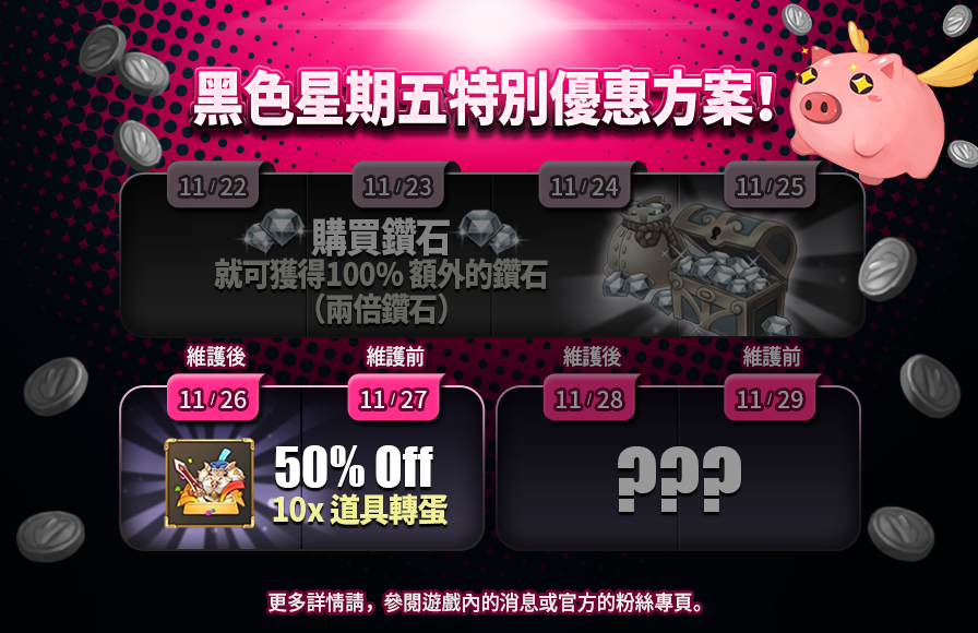 活動時間:2018.11.26伺服器維護後~至11.27 23:59 PST