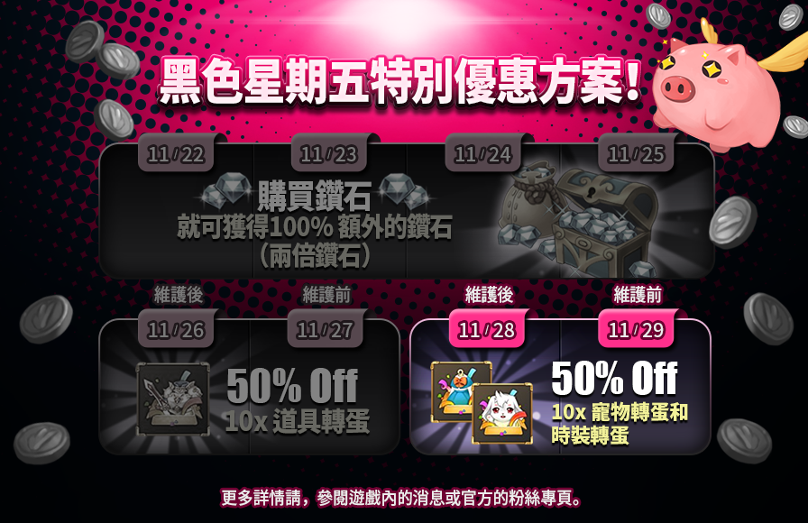 活動時間:2018.11.28伺服器維護後~至11.29 23:59 PST