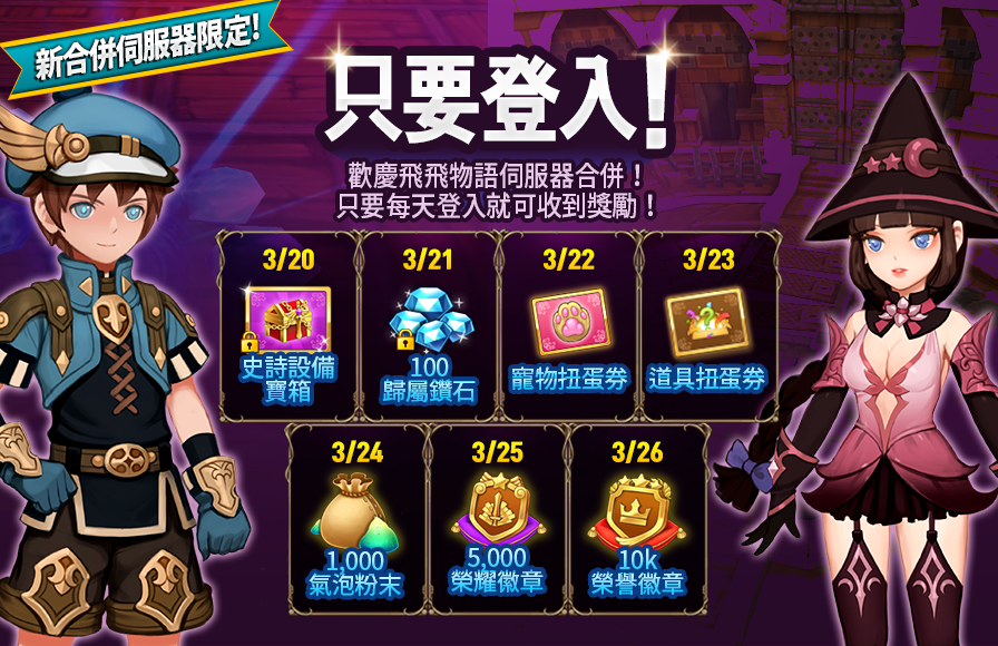 活動說明:每天登錄遊戲就可獲得新的獎勵! (僅限新合併伺服器)