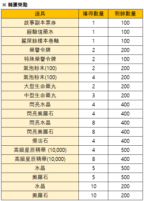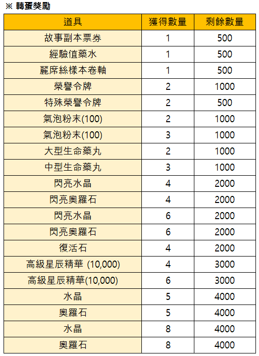 *如果限量轉蛋的獎勵已全被轉完時,活動將會提前結束。