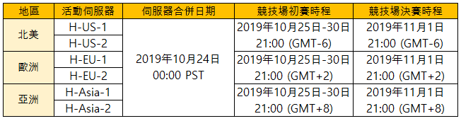 - 競技場每天在活動伺服器中舉行一次,初賽將進行6天。