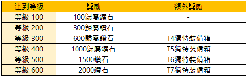 2.活動獎勵: 達到一定等級並將獎勵發送至您遊戲中的郵箱