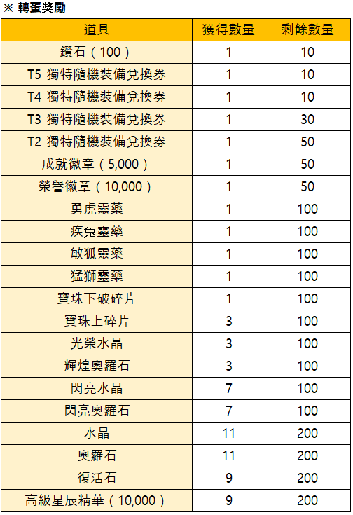 *如果限量轉蛋的獎勵已全被轉完時,活動將會提前結束。