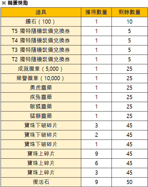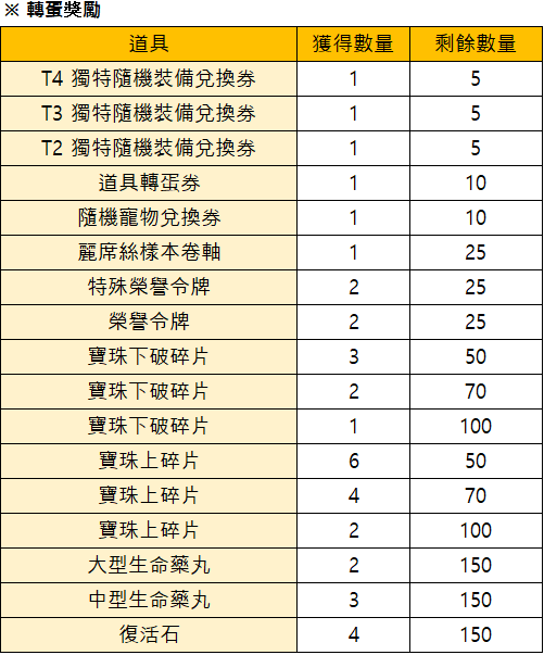 *如果限量轉蛋的獎勵已全被轉完時,活動將會提前結束。