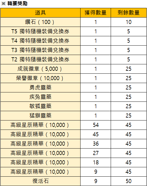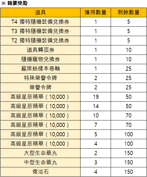 *如果限量轉蛋的獎勵已全被轉完時,活動將會提前結束。