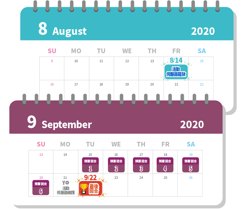 1) 此活動的新伺服器將於太平洋標準時間2020年8月14日00:00在所有地區開放。北美,歐洲和亞洲每個地區分別開放一個活動伺服器。