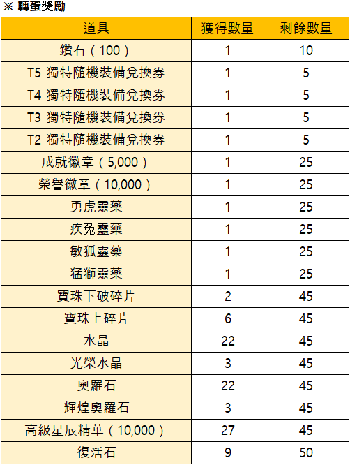 *如果限量轉蛋的獎勵已全被轉完時,活動將會提前結束。