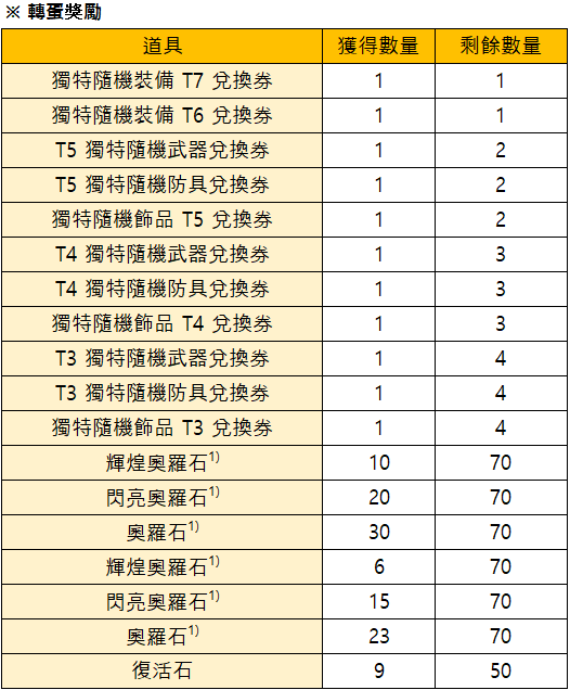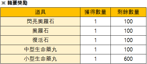 *如果限量轉蛋的獎勵已全被轉完時,活動將會提前結束。