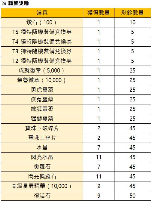 *如果限量轉蛋的獎勵已全被轉完時,活動將會提前結束。