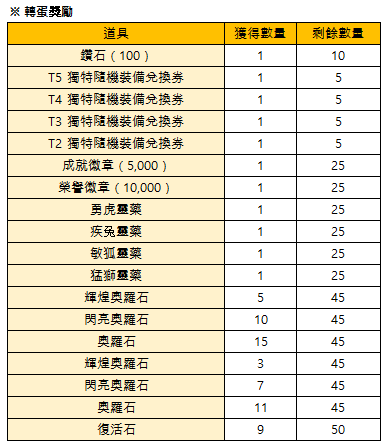 *如果限量轉蛋的獎勵已全被轉完時,活動將會提前結束。