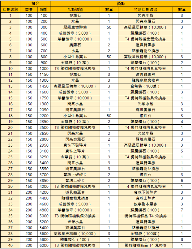 4.如果未滿足最低要求積分,而玩家獲得較低等級獎勵的情況,則排名低於獲得較低等級獎勵的玩家,將按滿足得獎積分要求順序獲得該等級的獎勵。