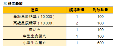 *如果限量轉蛋的獎勵已全被轉完時,活動將會提前結束。