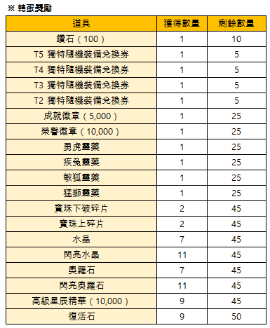 *如果限量轉蛋的獎勵已全被轉完時,活動將會提前結束。