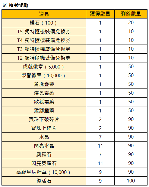 *如果限量轉蛋的獎勵已全被轉完時,活動將會提前結束。