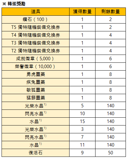 *如果限量轉蛋的獎勵已全被轉完時,活動將會提前結束。