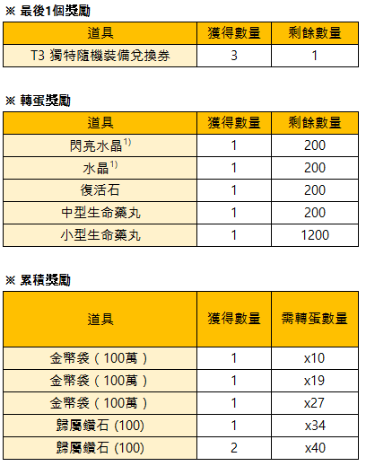 *如果限量轉蛋的獎勵已全被轉完時,活動將會提前結束。