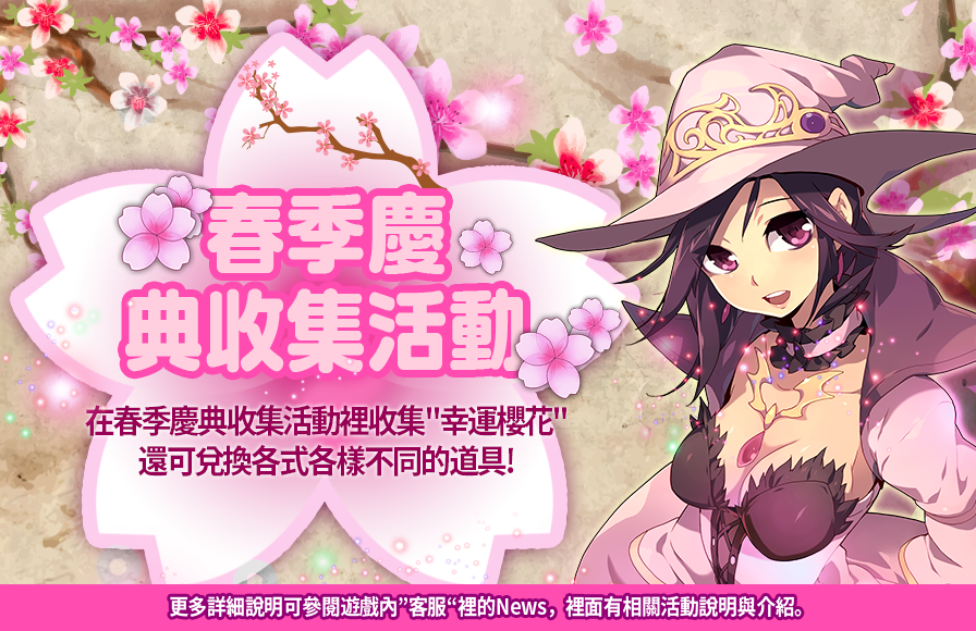 當你每天完成副本或其他任務時,你將會收到”幸運櫻花”,你可以用這些”幸運櫻花”在特別活動裡來兌換其相對應的道具。