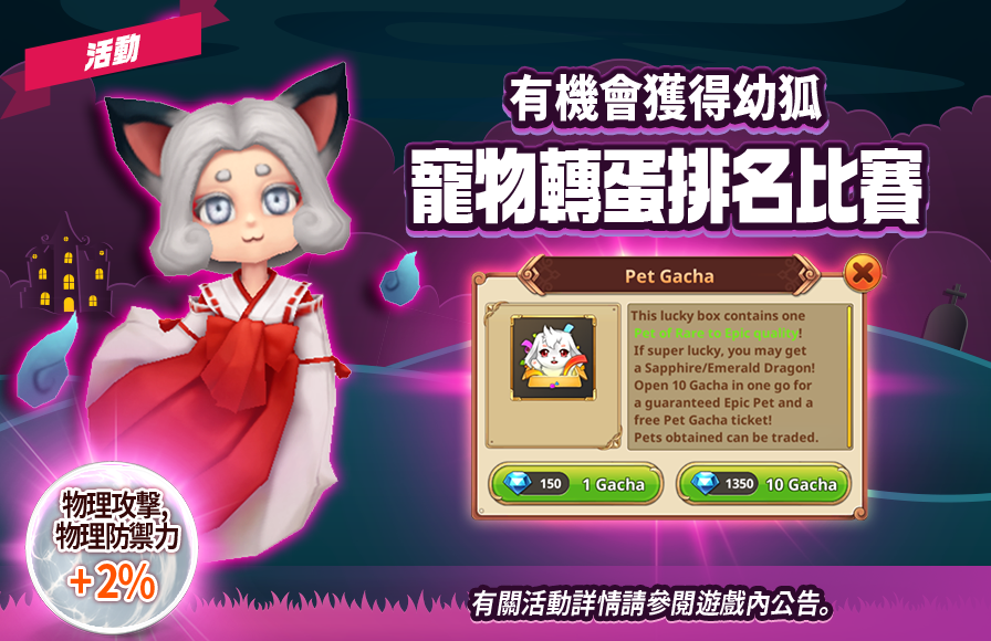 內容: 有機會轉出多個且稀有的寵物並贏得獎勵!