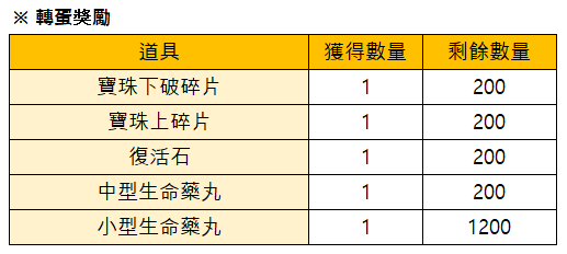 *如果限量轉蛋的獎勵已全被轉完時,活動將會提前結束。